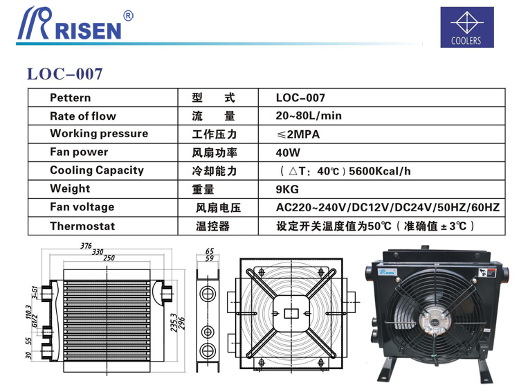 RISEN 日森 板式 風冷卻器 兩側(cè)油口 風冷 LOC-007 20-80L